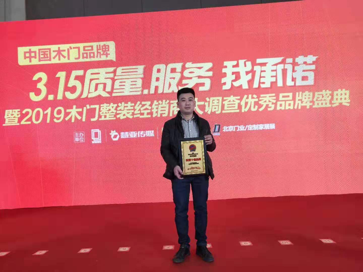 喜報:升升概念木門榮獲—中國官方權(quán)威舉辦的一年一度(2019第十八屆中國國際門業(yè)展覽會、第六屆中國國際集成定制家居展覽會)之——315質(zhì)量 服務(wù) 我承諾,大會上獲得經(jīng)銷商投資十佳品牌。主辦單位:中國木材流通協(xié)會及慧亞傳媒集團。